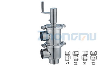 衛(wèi)生型手動截止/換向閥通過手動曲柄裝置使閥門逐步打開,所有部件通過卡箍和閥桿夾緊連接,為便于安裝,擁有開放式的支架,將支架與閥體分開,易于清洗。手動型閥門能夠輕易地轉(zhuǎn)換成氣動型閥門,只需將手動曲柄換成驅(qū)動裝置。