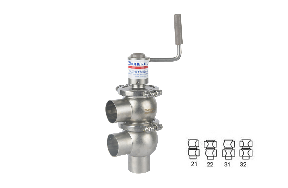 衛(wèi)生型手動截止/換向閥通過手動曲柄裝置使閥門逐步打開,所有部件通過卡箍和閥桿夾緊連接,為便于安裝,擁有開放式的支架,將支架與閥體分開,易于清洗。手動型閥門能夠輕易地轉(zhuǎn)換成氣動型閥門,只需將手動曲柄換成驅(qū)動裝置。