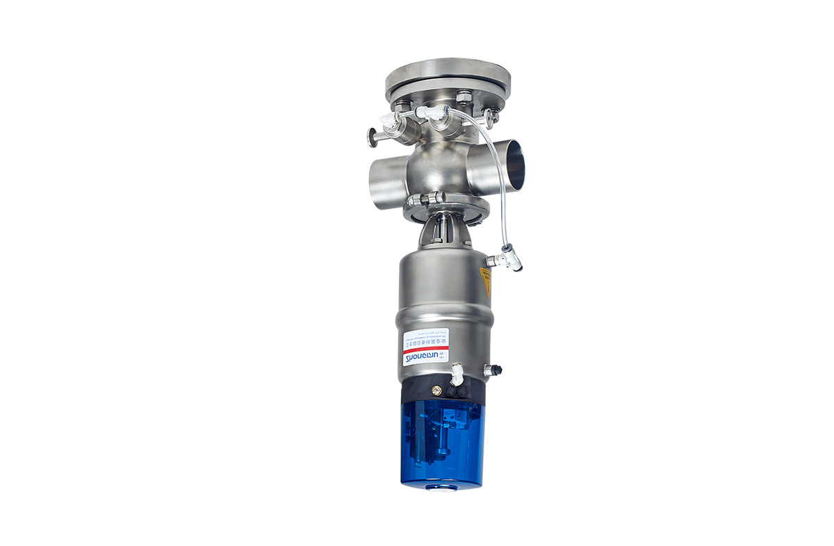 該閥門裝配有兩只小型的、正常狀態(tài)下開啟的氣動(dòng)閥門,一只監(jiān)測(cè)閥門和一只原位清洗(CIP)用的閥門。